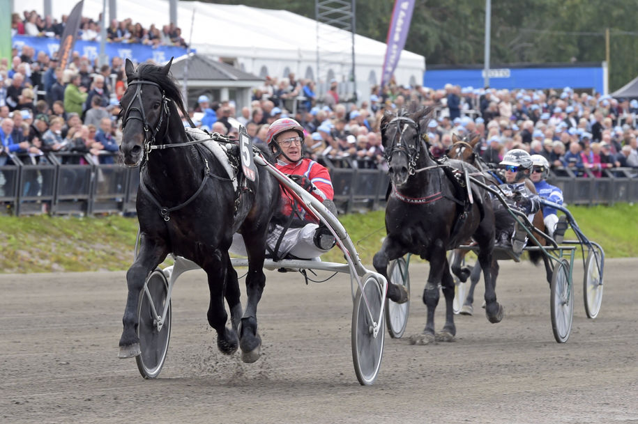 – Han var så pass på tårna i dag att han måste få gå från start. Jag kände att dra ihop honom går inte för han var så laddad. De hade sagt hela tiden att de inte skulle släppa med Odin Tabac men när jag petade på min häst efter 300 meter så tog vi ledningen. Sedan tänkte jag att det kanske skulle bli drygt till mål men 200 kvar smackade jag på honom och då tog han tag i grejerna och vann med propparna kvar i öronen, summerade Gunnar Melander loppet.