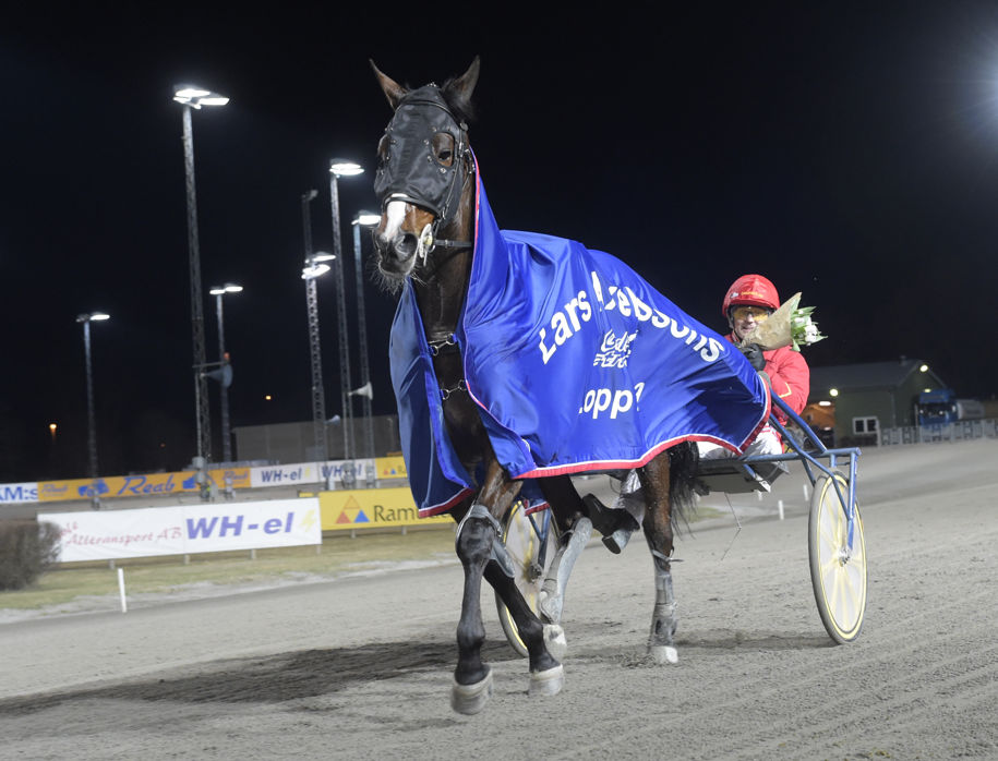 Trippeln vann han 18 april. Segerhästarna då var Livi Majesty, Disco Volante (på bilden segerdefilerar ekipaget efter segern i Lars Axelssons lopp på 10,2ak) och Bonjour Lascaux.