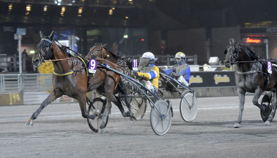 Segerraden inleddes med 3-årige valacken Mellby Howlit efter Explosive Matter, som vann med fem längder på 12,6ak i sin femte start. 12,6ak var dagens snabbaste segrartid! Skötare: Hanna Vestfält. Seger nummer två tog 3-årige valacken Mellby Hurricane efter Going Kronos som spårade hela vägen. Skötare: Rebecca Sjöberg. Trippeln ordnade Mellby Hoffa (bilden). Det var förresten hästens femte raka seger. Även han en 3-årig valack efter Going Kronos. Skötare: Ebba Janius. Alla de här tre hästarna tränades av Timo Nurmos och kördes av Jorma Kontio. Avslutade Mellbys lista över segrare denna kväll gjorde Mellby Glader. En 4-åring valack efter Going Kronos, tränad och körd av Robert Bergh. Skötare: Hannah Gustavsson.