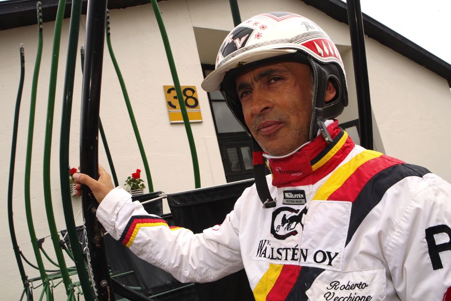 Körande Roberto Vecchione (bilden) kastade loss från andra par utvändigt inför slutsvängen och svepte förbi ledande Hambletonian-vinnaren Atlanta på några steg innan han försvann till nästan lika överlägsen seger som sin landsman Twister Bi gjorde i VM-loppet för två år sedan.