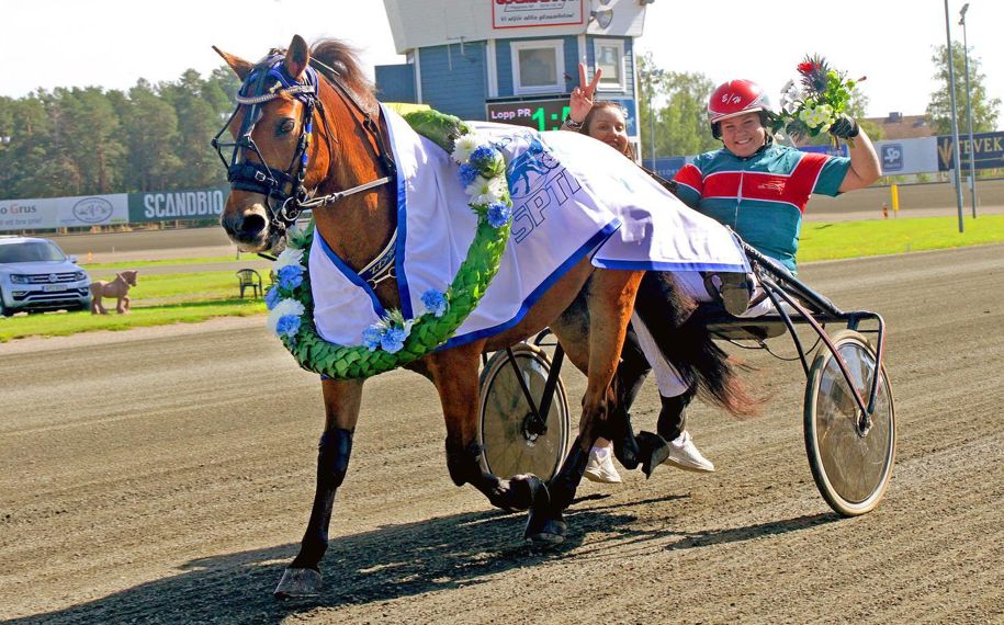 En annan som staplar segrar på löpande band är Emelinda Persson från Hudiksvall. Som kusk har hon 32 starter och 20 segrar i år. I lördags var hon till Skellefteå och körde fyra lopp – och vann alla fyra! Måntorps Unik, Hamras Neo, Maseratii Q (sex raka segrar nu) och Måntorps Opal hette segerhästarna.