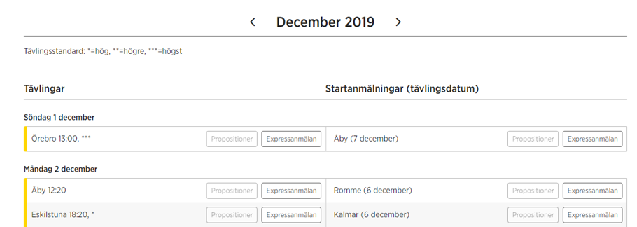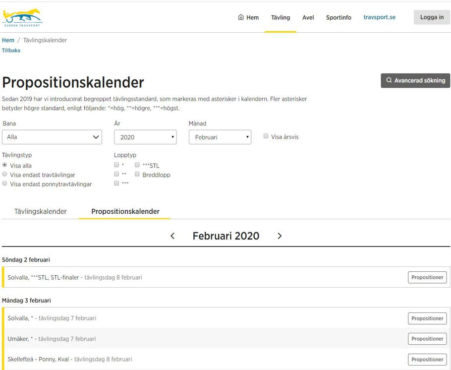En publik funktion som fått lite annat utseende är Propositionskalendern. Den var tidigare indelad i två delar. Till vänster visades dagens tävlingar och till höger de tävlingsdagar vars startanmälningar stängde aktuell dag.