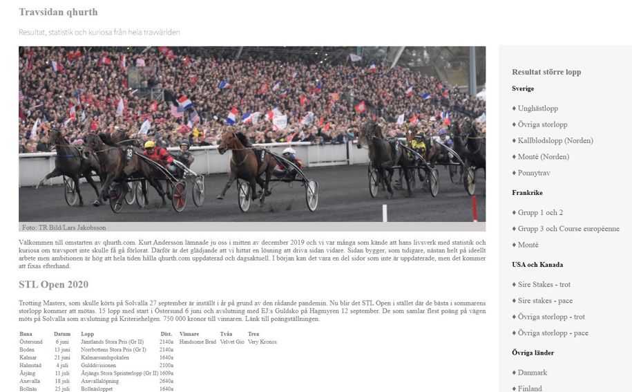 Svensk Travsport hade ett samarbetsavtal med Kurt fram till han gick bort i december och det togs tidigt kontakt med Kurts efterlevande för att hitta en lösning som kunde säkerställa att sidan levde vidare. På grund av coronautbrottet så har arbetet tagit lite längre tid än planerat men nu är allt klart för premiär.
