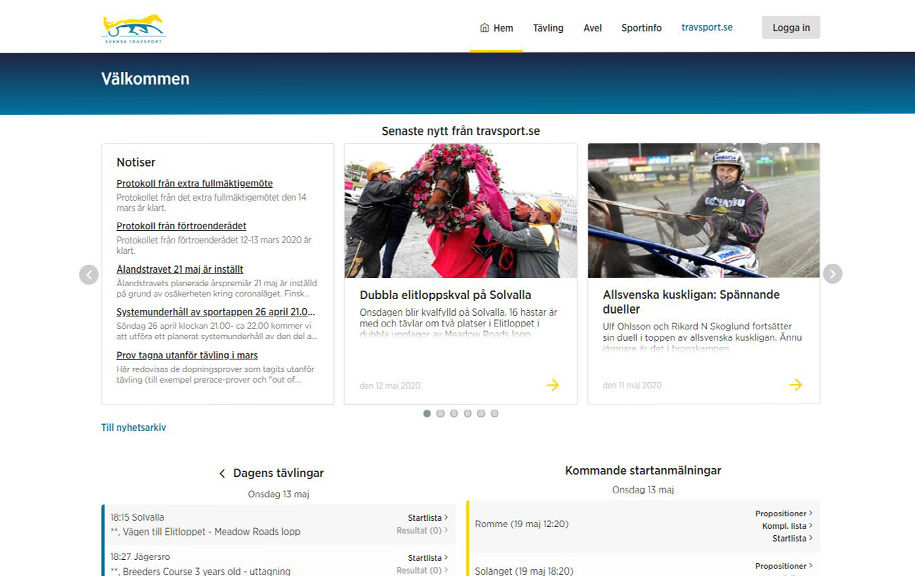 För att du som användare av Sportappen och det inloggade läget inte ska missa några viktiga nyheter på travsport.se om du går direkt till Sportappen, har vi valt att från och med nu lyfta in nyhetsflödet och notisflödet på startsidan. Du kommer där att se de fem senaste nyheterna och de fem senaste notiserna samt kunna klicka dig vidare för att läsa hela artiklarna.
