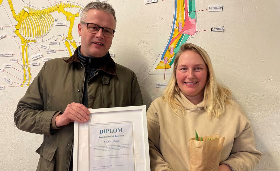 Utmärkelsen delades ut på travskolan där representanter från Svensk Travsport, tillsammans med Emilias kollegor, gratulerade pristagaren.