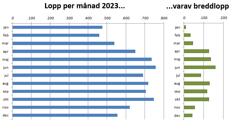 Vi planerar för strax under 8 000 lopp 2023, vilket är fem procent färre än 2022.