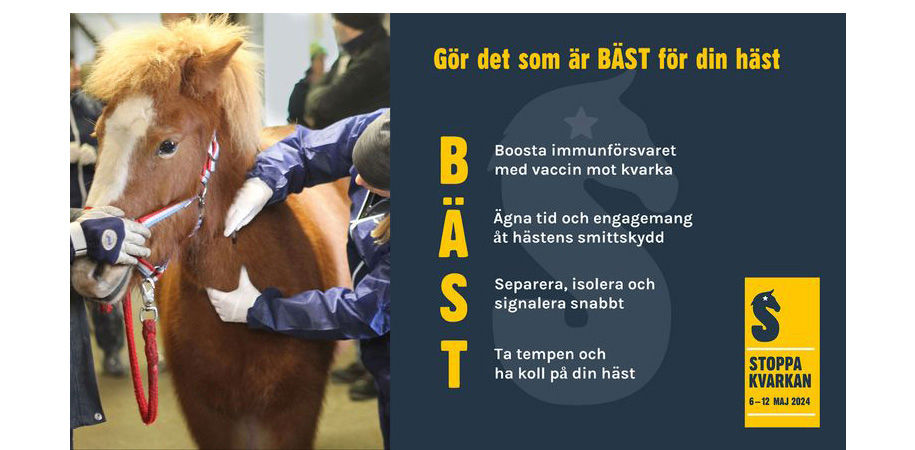 Årets kampanj Stoppa kvarkan har fokus på fyra enkla åtgärder som sammanfattas med ”Gör det som är BÄST för din häst.”