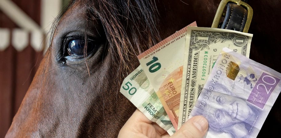 För utlandsregistrerade hästar som ofta tävlar i Sverige får valutaväxlingen ibland konsekvenser som kan se konstiga ut. Vi tar som exempel en danskregistrerad debutant som vinner ett nollopp på Jägersro i slutet av december och tjänar 40 000 svenska kronor. När samma häst ska anmälas till ett nytt svenskt lopp några veckor senare i januari, kommer den hästen ha 38 061 svenska kronor som startprissumma i Sverige.