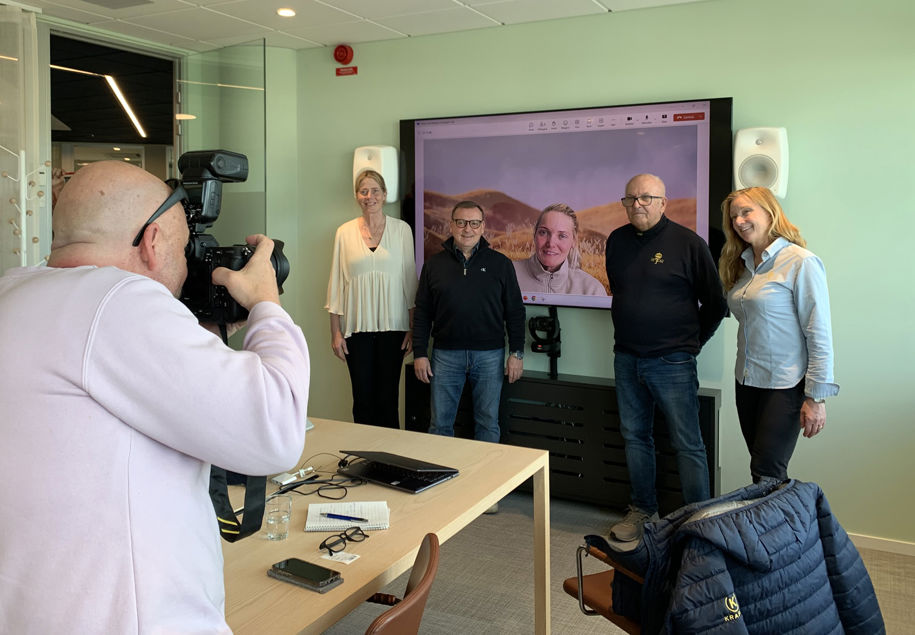 Bilden: Strategiska rådet blir fotograferade. Svensk Travsports vd Maria Croon, Daniel Olsson, Bo Milton och Wångens vd Anna Wersén. I mitten syns Maria Törnqvist som var med på distans. Saknas gör Daniel Wäjersten