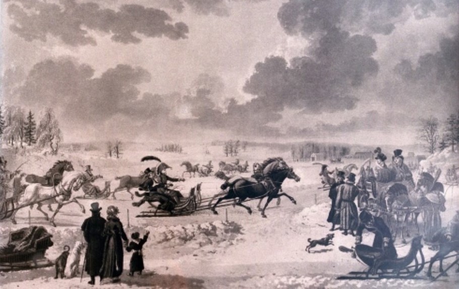 Målning av istrav på Brunnsviken i Stockholm vid 1900-talets början.