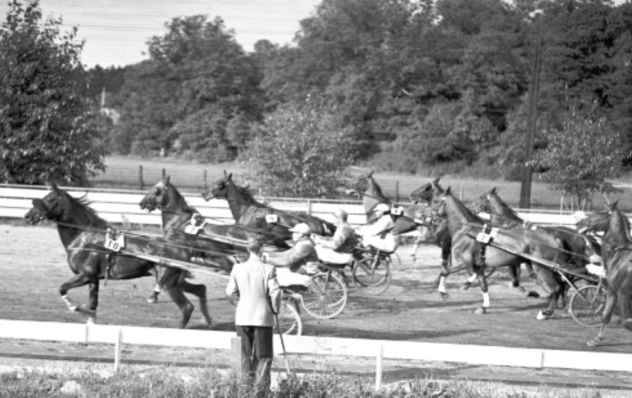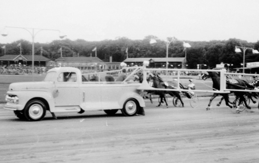 Travare bakom startbilen på danska Charlottenlund på 1950-talet.