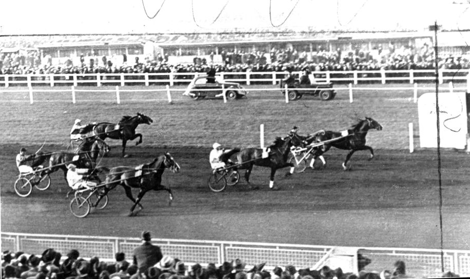 Pluvier III med Gunnar Nordin vinner "VM-loppet" på Roosevelt Raceway i New York.
