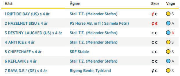 För att ge spelare och publik bra information inför loppen, visas i våra startlistor den sulkykategori som tränaren har för avsikt att använda. Sulkykategorin visas dels med en bokstav, dels med en färg.